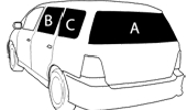 後のドアが上または横方向に開いてフィルム施工がし易いガラス